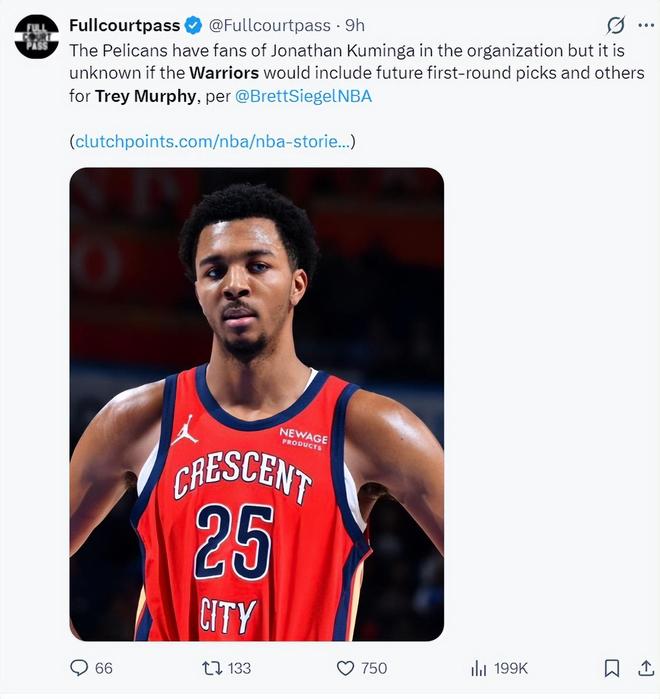 记者:勇士需提供21年7号秀库明加外更多资产才能换同年17号秀墨菲