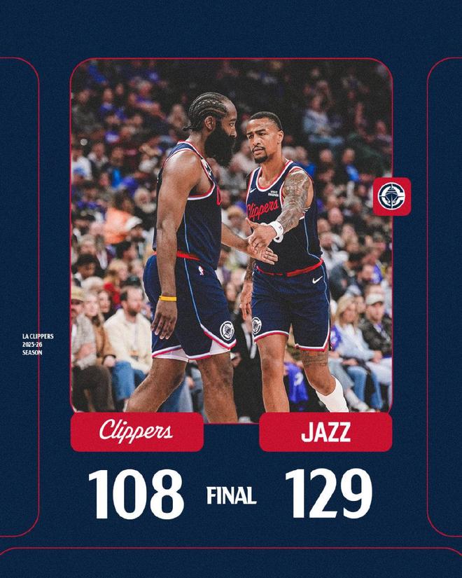 北京时间10月23日,NBA常规赛,快船揭幕战客场挑战爵士。本场比赛快船上来状态糟糕,面对爵士的大阵容完全迷失,首节直接19-43落后,之后全面陷入被动,全队士气低迷,半场打完直接落后高达31分;下半场爵士依然保持着稳定的局势,最多领先37分,没有给快船任何反扑的机会。最终,爵士129-108爆冷掀翻快船。