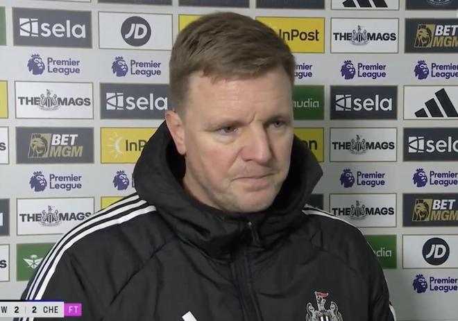 英超第17轮,纽卡斯尔联主场2-2战平切尔西,纽卡主帅埃迪-豪赛后接受了TNT体育的采访。